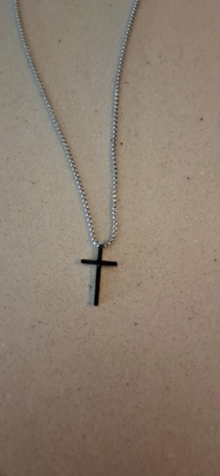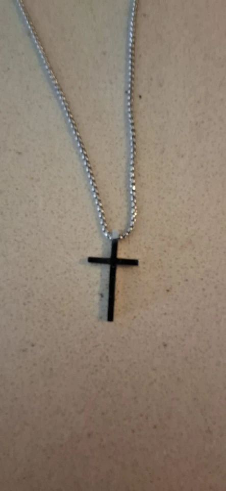 Jan Steuber Simple Cross in Chromed Metal about 3cm by 1.5cm.